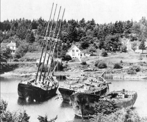 Schooner View overlooks the location of Maine’s last big schooners. The Zebedee E. Cliff, Courtney C. Houck & Edna M. McKnight were abandoned in Mill Cove in the 1930’s. These ships lasted into the 1990’s and at low tide you can still see the remnants of the majestic ships.